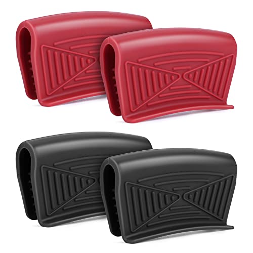 Prasacco Silikonhandtag för krukor, 2 par silikonhjälphandtag hållare halkfri värmebeständig grythandtag skyddande för ugnsskålar gjutjärnsstekpannor kök matlagning bakning (svart, röd)