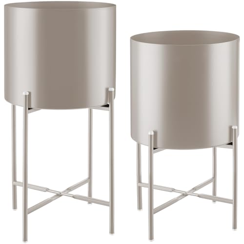 tectake® Set av två växtställ, blomsterställ i industriell fesign med avtagbara krukor, pulverlackerat stål, halkskydd & golvskonande fötter, för inomhus & utomhusbruk - Taupe