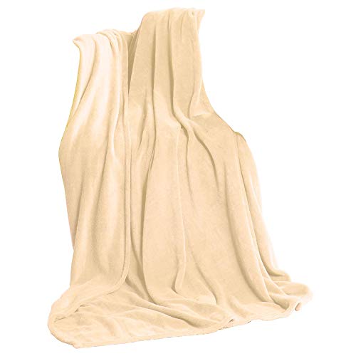 MIULEE Flanell-fleecefilt eller överkast, mjuka, varma och bekväma överkast för soffor, manchester, fluffig filt, sängöverkast för sovrum, soffa, resor och barnens sovrum. tillbehör. 127 x 152 cm (50 x 60 tum), beige