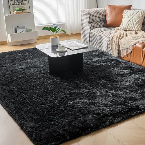 Stor supermjuk fluffig matta vardagsrumsmattor sammet lurvig matta halkfri matta modern inomhus stora fluffiga mattor sovrum lurviga mattor bekväm matta av CHOSHOME (svart, 150 x 240 cm)