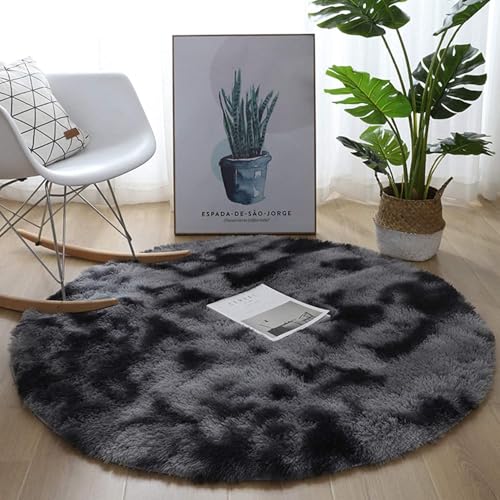 Leesentec Runda mattor, sovrumsmattor, vardagsrumsmattor, halkfri, mjuk, fluffig, lurvig matta (140 cm, svart/grå)
