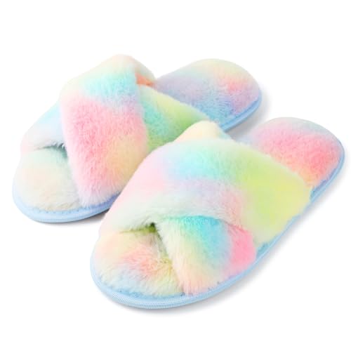 riemot tofflor dam vinter plysch tofflor minnesskum varma tofflor bekväma halkfria fluffiga tofflor, regnbågsfärger, storlek 38–39, Regnbågsfärger, 38/39 EU