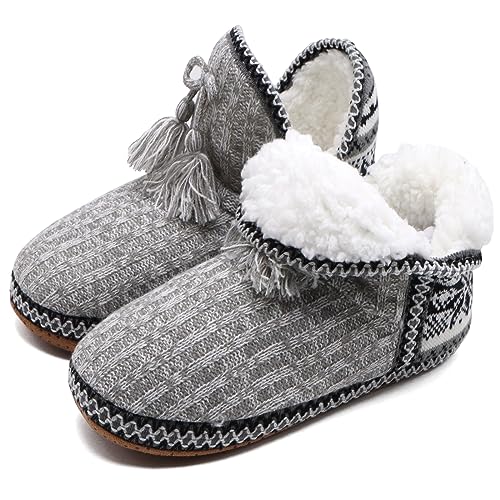 CityComfort Sherpa fodrade tofflor för kvinnor tonåringar, fluffiga slip-on husskor med halkfri sula – gåvor till henne, Grå, 39 EU
