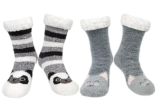 PUTUO Fluffiga strumptofflor för dam, varma, fleecefodrade tofflor, inomhusstrumpor, med tecknade djurmönster, sängstrumpor, halkfria, storlek 4–9, 1 par, 37-43 EU