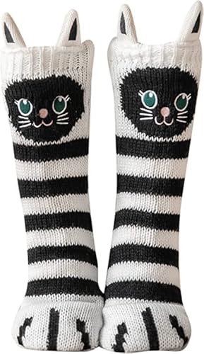 QKURT 5 par fluffiga kattstrumpor, luddig mysig vinter tjock varm sömn golv tofflor strumpor hem strumpor för kvinnor flickor