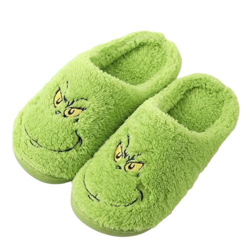 ENIXWH Grinch Tofflor jul glada tofflor för kvinnor män rolig plysch vinter varma fluffiga tofflor, en, 37/38 EU