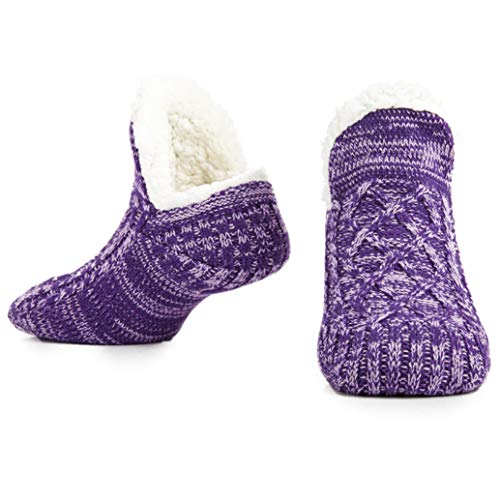 CityComfort Tofflor för kvinnor, fluffiga och varma fleecefodrade anti-halkstrumpor (Tvåtonslila)