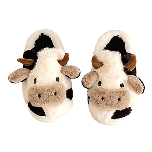 Tofflor dam vinter varma, roliga mysiga fluffiga ko plyschtofflor, halkfria mjuka skor hustofflor vintertofflor för kvinnor, storlek 40–41