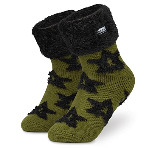 CityComfort Tofflor strumpor kvinnor tonåringar - fluffiga strumpor Halkfri varm fleece One Size Lounge Wear - Presenter för kvinnor (Grön)