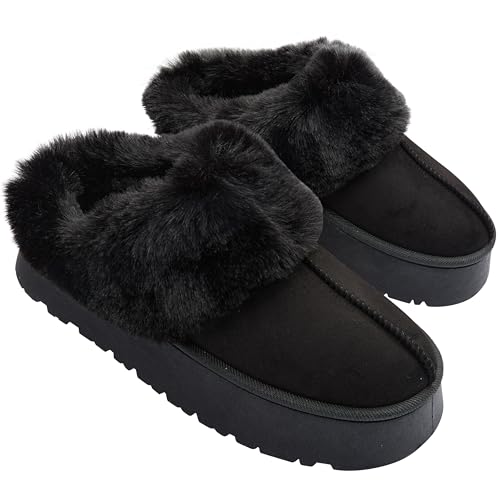CityComfort Sherpa fodrade tofflor för kvinnor tonåringar, fluffiga slip-on husskor med halkfri sula – gåvor till henne, Svart, 38 EU