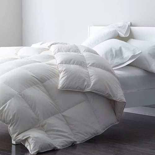 DWR duntäcke 200 x 200 cm vinteröverkast, 100 % ekologisk bomull, vinterfilt av fjädrar och dun 1350 g, extra varmt och fluffigt täcke, Ökotex, vit