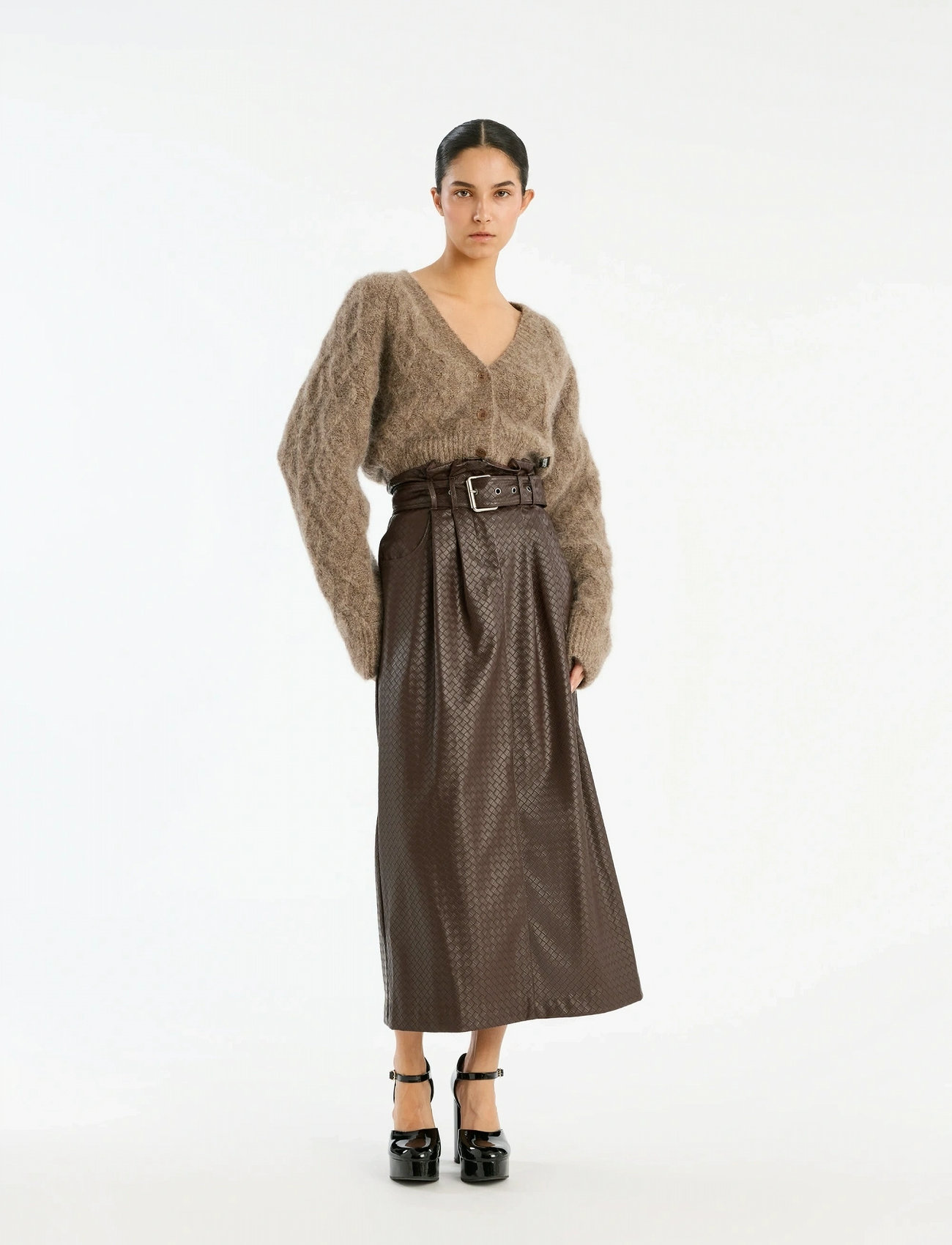 ROTATE Birger Christensen Fluffy Knit Cardigan - Brown - L