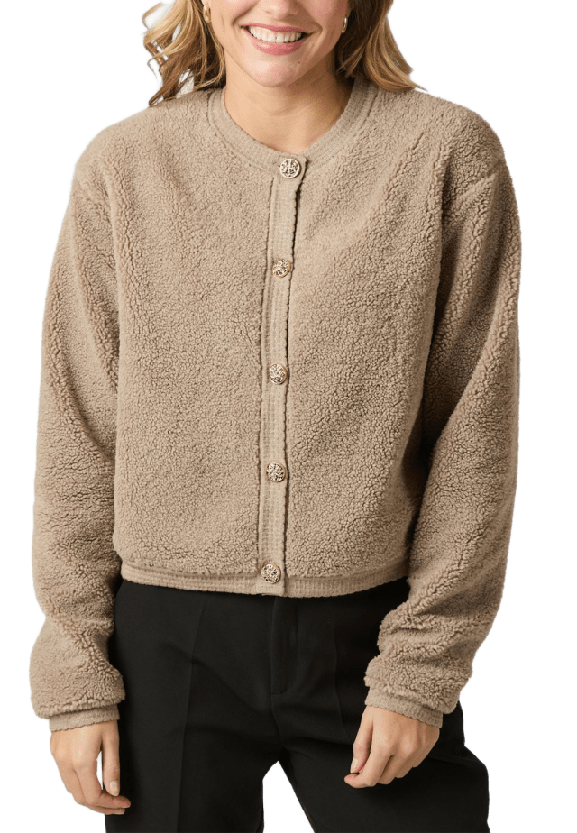 Monki Fluffy Knit Cardigan Brun