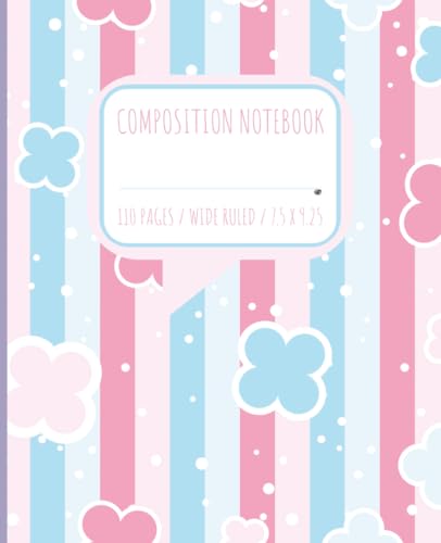 Composition Notebook: Fluffy Cloud Design Notebook Cute Clouds, Vibrant Colors, with Front Message Icon | Wide Ruled | 7.5 x 9.25" | 110 Page