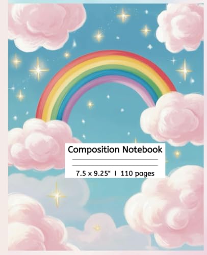 Clouds and Rainbow Composition Notebook: Soft pastel sky with fluffy cloud, stars and rainbows, cute school notebook, 7.5 x 9.25", 110 pages