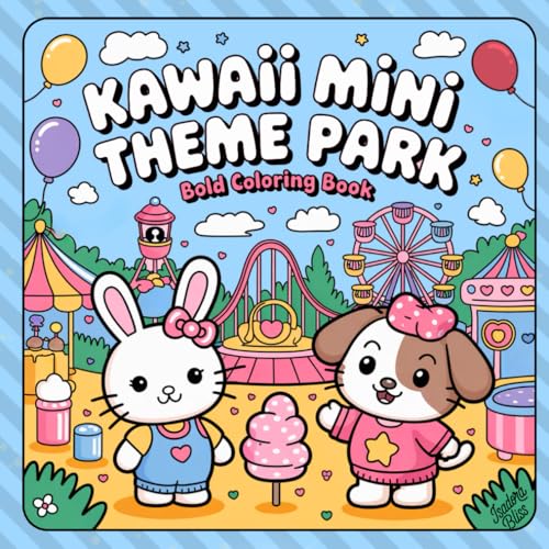 Kawaii Mini Theme Park: A Cute and Cozy Coloring Book: Color Candy Carts, Ferris Wheels, and Fluffy Clouds