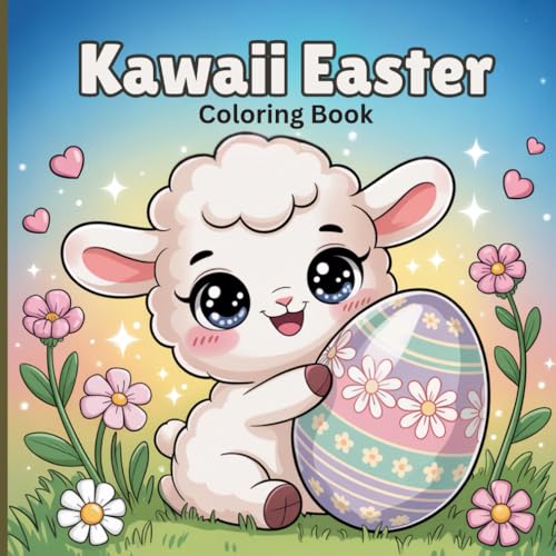 Kawaii Easter Coloring Book for Girls and Teens: Cute Bunnies, Baby Chicks, Spring Eggs, Rainbows, Fluffy Clouds, Bright Blooming Flowers and Relaxing Fun