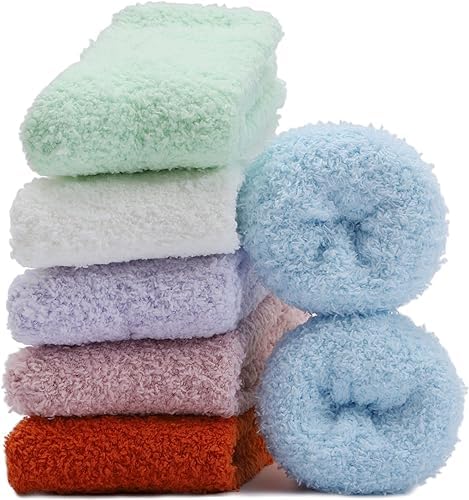 Fuzzy socks RHR - Sweden 3 Pairs multi colors Cozy fluffy socks for women fuzzy socks plush socks For Girls Women, Multicoloured, One Size, multi-colord