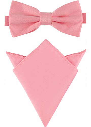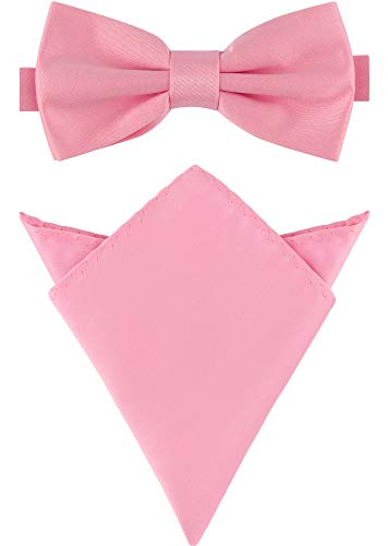 Massi Morino fluga herr med näsduksset I kostym rosett förbunden till bröllop för herr I båge slips justerbar, Dämpad rosa