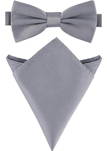 Massi Morino fluga herr med näsduksset I kostym rosett förbunden till bröllop för herr I båge slips justerbar, GRÅ