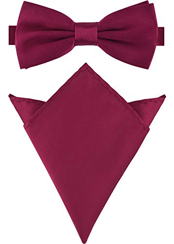 Massi Morino fluga herr med näsduksset I kostym rosett förbunden till bröllop för herr I båge slips justerbar, Vinröd, En Storlek