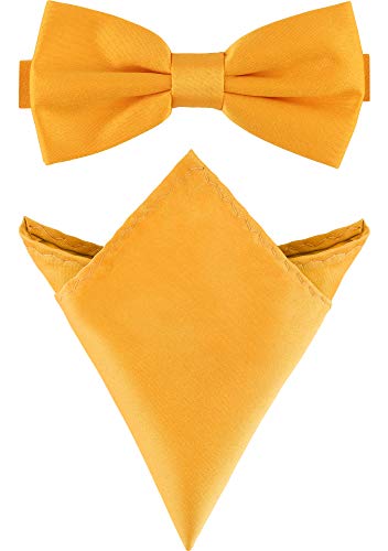 Ladeheid Liten Fluga för Herr och Näsduk M/P (12cm x 6cm, 22cm x 22cm, Mörk Gul)