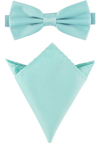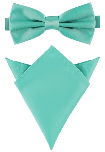 Massi Morino fluga herr med näsduksset I kostym rosett förbunden till bröllop för herr I båge slips justerbar, Tuerkis, En Storlek