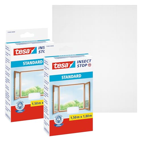 tesa Insect Stop Standard insektsnät för fönster i 2-pack – insektsskydd kan skäras till storlek – myggskydd utan borrning – 2 x flugnät vitt – 150 cm x 180, 1,5 m:1,8 m