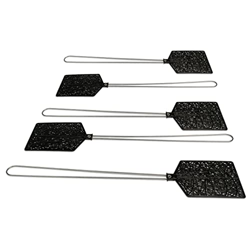 Hausfelder Flugsmälla PRO! Uppsättning av 5 flugklappar, metall, svart, myggflik för insekter som flugor, myggor (svart)