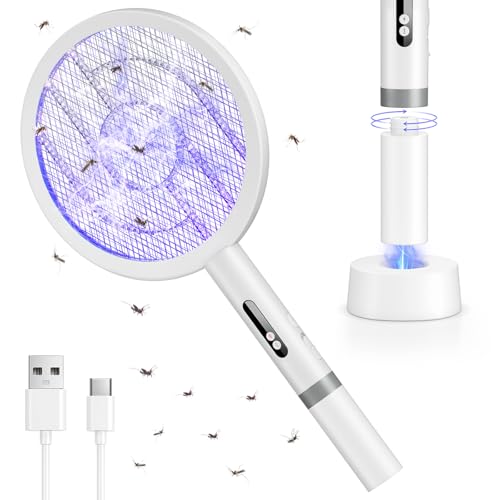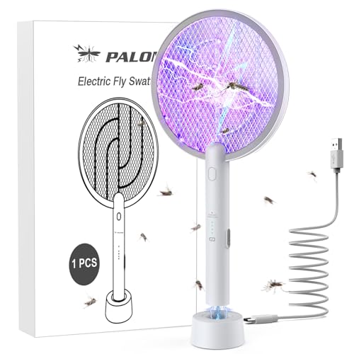 Palone Elektrisk flugsmälla med 4 000 V – elektrisk insektsbekämpare och UV-ljus mygglapp, 2-i-1 USB C uppladdningsbar inklusive laddningsbas