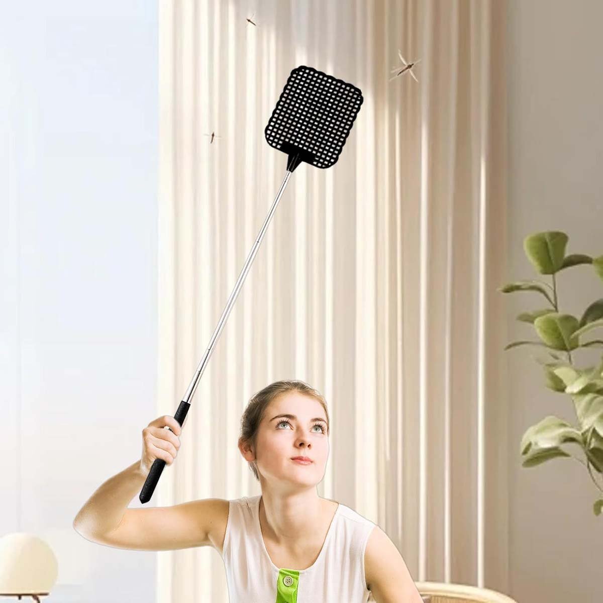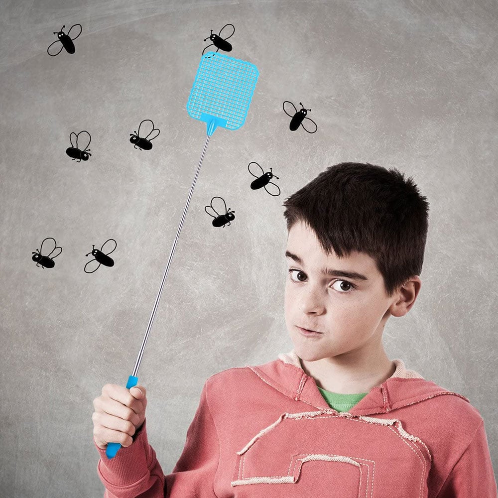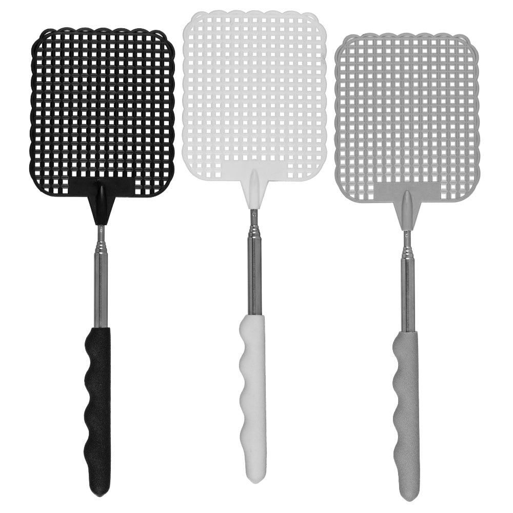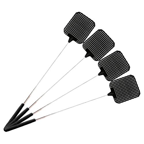 BBABBT 4 st flugsmälla plastfluga swat insekt mygggeting skadedjursbekämpning, teleskopisk stång klaff mygginsekt-svart