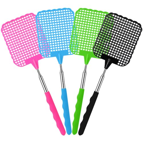 Soodyoow 4 st expanderbara flugflikar, färgglad flugsmälla, handflugsmälla för flugor, myggor och insekter