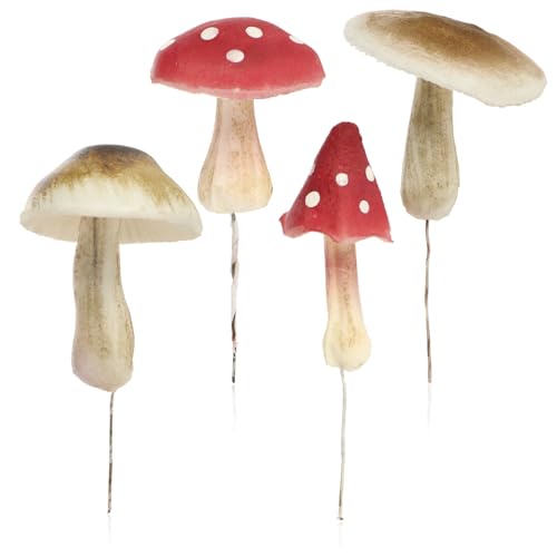 COM-FOUR® 4x dekorativ svamp - konstgjorda svampar att sätta in som höst- och juldekoration - vacker rumsdekoration - pryder presenter, arrangemang och kransar (2x flugsvamp / 2x Russula)