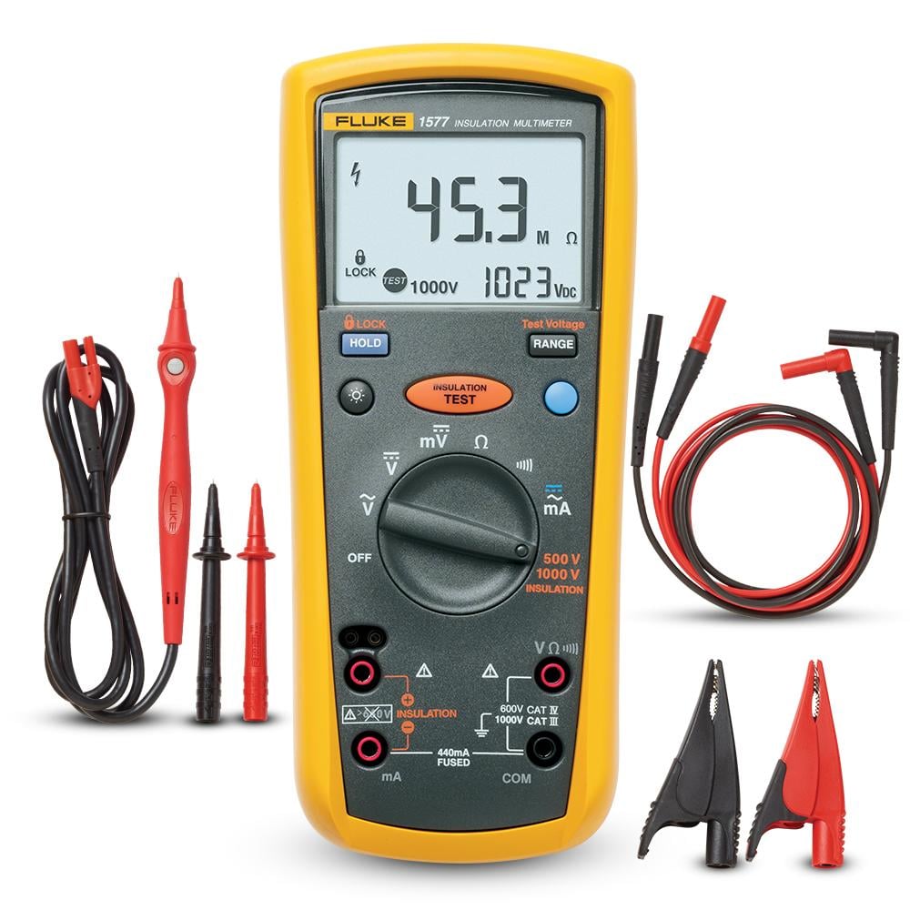 Fluke 1577 - Isoleringsmultimeter som kombinerar en digital isoleringstestare med en fullfjädrad, äkta RMS digital multimeter
