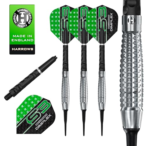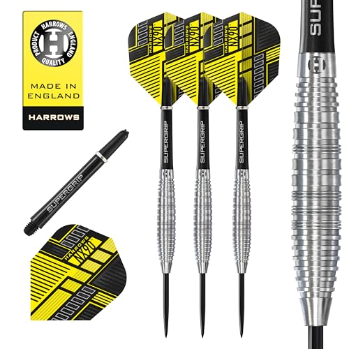 Harrows Original 90% volfram stålspets dart set | Finns i 22 g, 24 g och 26 g | Inkluderar midi Supergrip kolskaft och nya årsdagar 100 mikron flygningar (24 g)