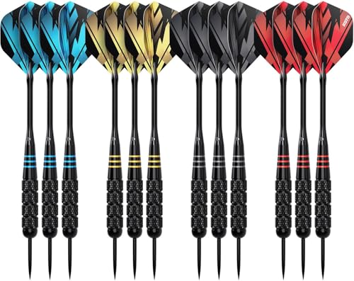 CareGames Stålspetspilar, professionella metallpilar, 12 st 18 gram dartpilar metallspetsset med 12 axlar, 24 extra flygningar, 2 flygskydd och dartvässare, metallpilar för darttavla