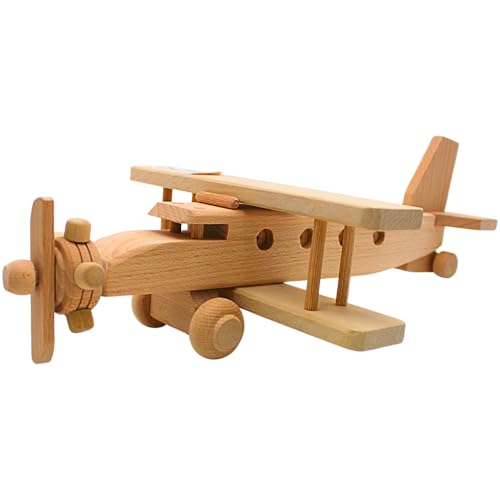 Hållbart trä – flygplan, träflygplan, dekorativa flygplan, träflygplan, retroflygplan med roterande propellrar, propellerflygplan som modell av trä, L/B/H 34 x 20 x 9 cm.