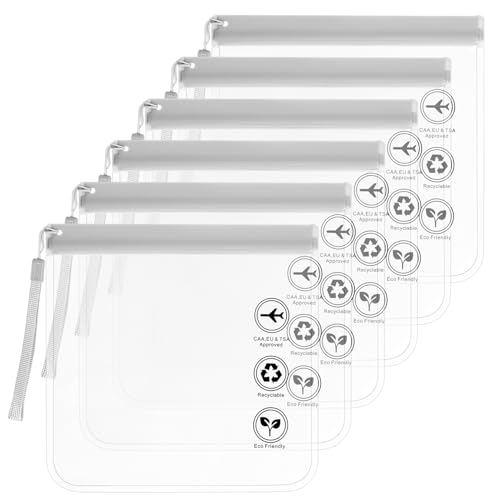 6 st svart blixtlåsväska flygplan, 1 liter påse flygplan handbagage vätskor påse, 20 x 20 cm TSA godkänd resenecessär vattentät resa semester måste, flygplansprylar, GRÅ, L