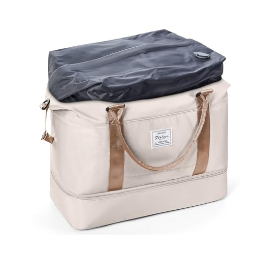 BAGSMART Easyjet Resväska, kabinbagage, uppblåst vattentät weekendväska för flygplan, sport, gym, lätt resa med PVC-våtfack, S-kamel, 42 cm x 19 cm x 30 cm, Tote