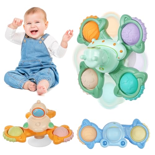 Ainiv Sugkopp Spinner Toppleksaker, 3 st Flygplan Resa Söta Badleksaker, Svängbara Sugkoppar Barnleksaker, Sensoriska Leksaker för Barn