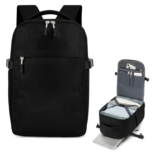 Xkdoai Handbagage 40 x 20 x 25 för Ryanair flygplan reseryggsäck med bagage arrangör 3 uppsättningar liten resväska handbagage unisex resväska ryggsäck resa ryggsäck resa väska, svart, Ryggsäck