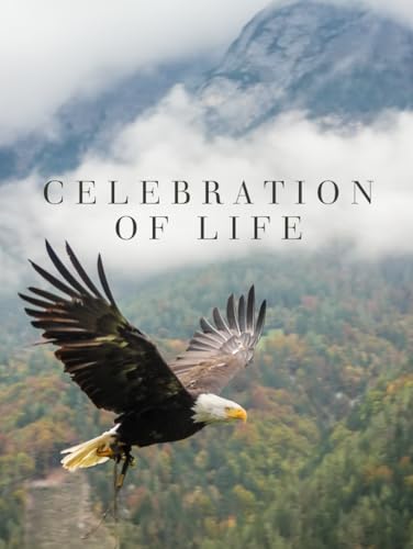 Celebration of Life: Guest Book for Funeral and Memorial Ceremony, 300 Person Sign In Registry (Bald Eagle Flying in Mountains Cover)