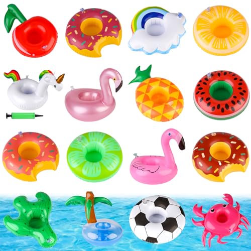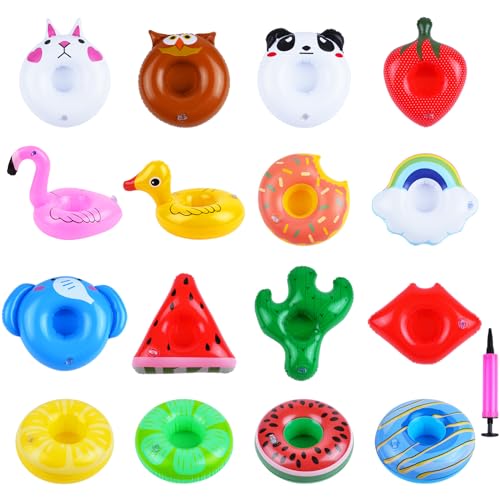 QUACOWW 17 st uppblåsbar dryckeshållare pool dryckeshållare underlägg för drycker, uppblåsbar flaskhållare, flytande badhållare för pool barn familj pool fest flaskhållare