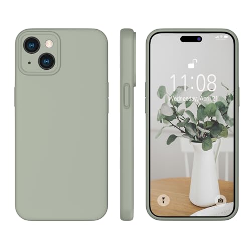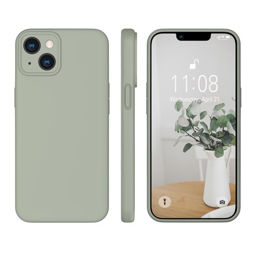 Kompatibel med iPhone 13 2021 fodral, komplett silikongel gummi flytande [med kameraskydd] telefonskal för iPhone 13 6,1 tum (grön)