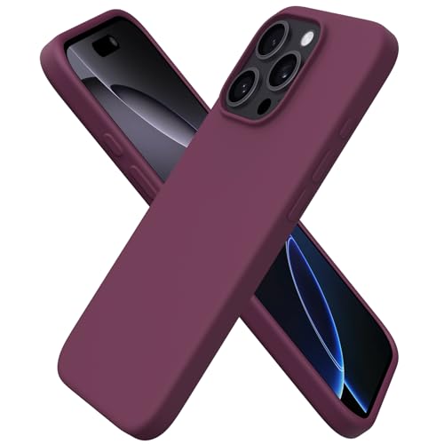 ORNARTO Kompatibel med iPhone 16 Pro fodral 6,3 tum, smal flytande silikon 3 lager mjuk gel gummi stöttåligt skyddsfodral med reptåligt mikrofiberfoder – vinröd