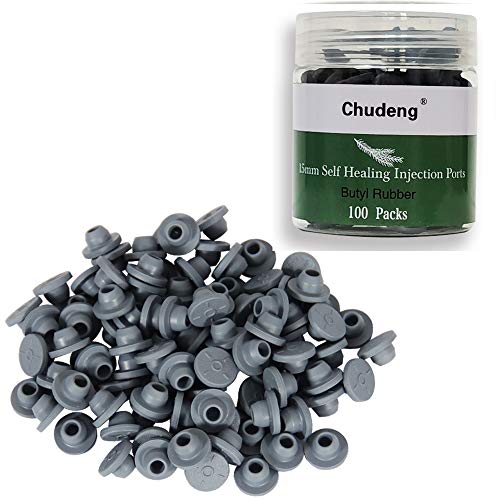 13 mm injektionsportar i gummi (100 stycken) svamp självläkande injektionsportar fast tätning, för glasflaska och flytande kulturburkar, kan steriliseras med ånga och upprepad användning (13 mm)