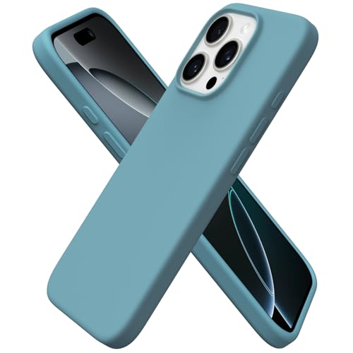 ORNARTO Kompatibel med iPhone 16 Pro fodral 6,3 tum, smal flytande silikon 3 lager mjuk gel gummi stöttåligt skyddsfodral med reptåligt mikrofiberfoder – rosa krita