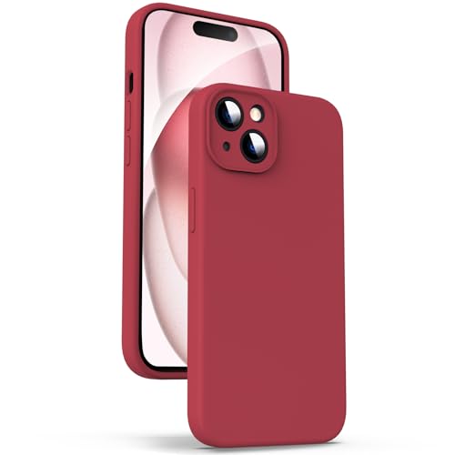Supdeal Flytande silikonfodral för iPhone 15 – [kamera allsidigt skydd] [Reptåligt integrerad mjuk mikrofiber] 4 lager fullt skydd stötsäker gel gummi mobilskal, 6,1 tum, röd
