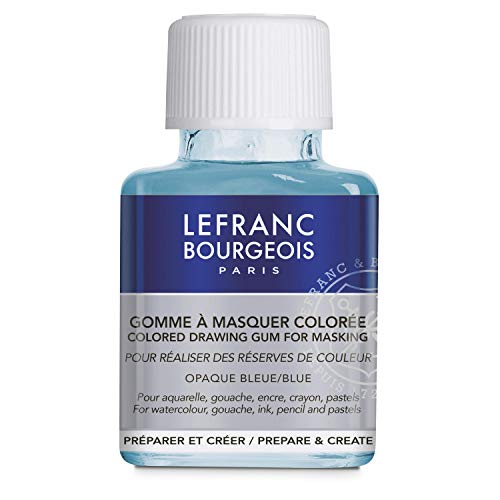 Lefranc & Bourgeois 301156 maskeringsgummi, flytande avtagbar skrapkrapp i blått, kan tas bort för akvarellfärger, gouache, bläck – rita gummi 75 ml flaska