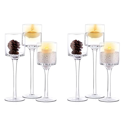 Nuptio Nuptio Glas Te-ljushållare 6st Långa Ljushållare Med Lång Stjälk Tända Ljus Och Flytande Ljus, Hög Elegant Pelarljushållare för Bröllopsfest, Julbord Och Julcenter I Vardagsrummet